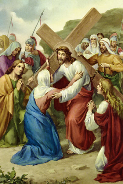 How sad and how painful must it have been for Mary to behold her beloved Son laden with the Cross, covered with wounds and blood, and driven through the streets by savage executioners! What unspeakable pangs her most tender heart must have experienced! How earnestly did she desire to die instead of Jesus, or at least with Him!